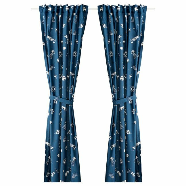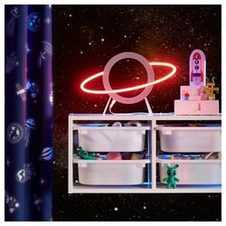 Когда космическая ракета вернулась на Землю, а игры на сегодня закончены, пора закругляться и готовиться ко сну. Приключения могут продолжиться в сказке на ночь и во сне. Ведь при выключении света рисунок планеты на шторе AFTONSPARV будет светиться. Что это было? Может быть, космический корабль, полный дружелюбных зеленых инопланетян. Или падающая звезда, чтобы вы могли загадать желание...
