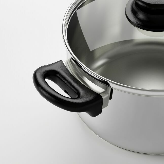 Стеклянная крышка позволяет следить за содержимым кастрюли в процессе приготовления.