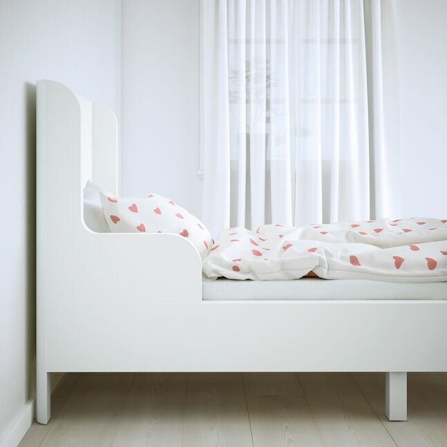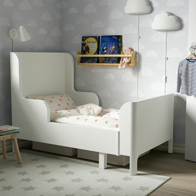 Игровой дизайн из прочных материалов с прочными поверхностями и мягкими закругленными углами. Она также выдвигается, чтобы расти вместе с вашим ребенком. Кровать, созданная для дерзкого ребенка, или BUSUNGE, как говорят в Швеции.