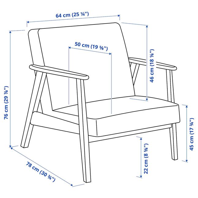 Кресло EKENÄSET придает комнате стильный ретро-вибратор, вдохновленный скандинавским дизайном 1950-х годов. Классический внешний вид подходит к любому интерьеру и обеспечивает прочное и надежное сидение на долгие годы.
