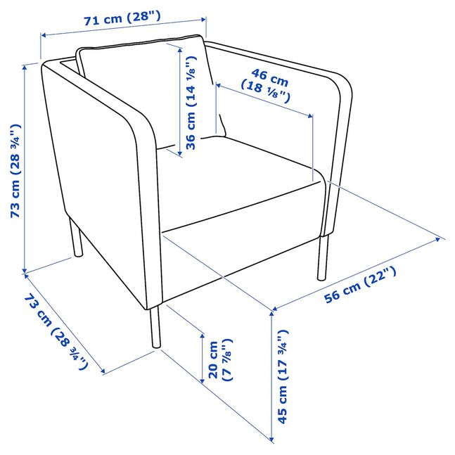 Выбирайте стильные темные тона или украсьте свой дом яркими чехлами. Кресло EKERÖ имеет элегантный, современный вид с двумя боковыми частями, которые соединяются в спинке - и поясничной поддержкой для дополнительного комфорта!