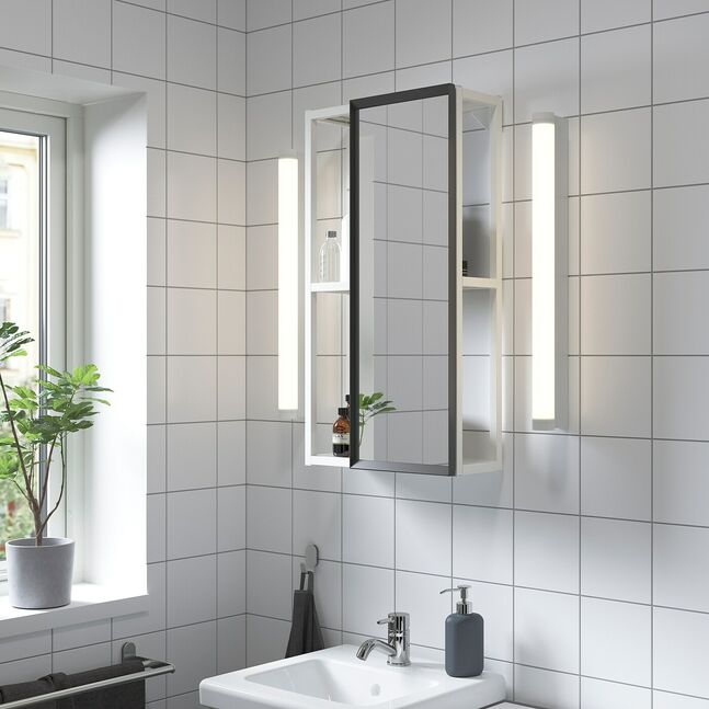 Подвесное зеркало ENHET для рамы легко крепится к стене, чтобы вы могли наслаждаться видом в мгновение ока. Оно сдвигается в сторону, обеспечивая легкий доступ к предметам повседневного обихода.