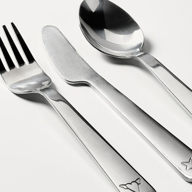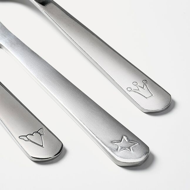 Если вы будете есть теми же столовыми приборами, что и взрослые, ваш ребенок почувствует себя особенным. Они изготовлены из нержавеющей стали, их можно мыть в посудомоечной машине, а размер как раз подходит для рук маленького ребенка.