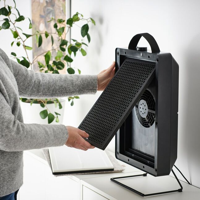Фильтр FÖRNUFTIG для очистки газов поглощает различные газообразные загрязнители, такие как формальдегид, который может содержаться в таких вещах, как чистящие/бытовые средства, различные ткани и материалы в вашем доме.