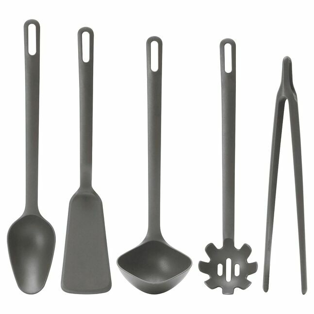 В набор входят: Тернер (32 см), ложка (33 см), половник для супа (29 см), паста (31 см) и щипцы для готовки (28 см).