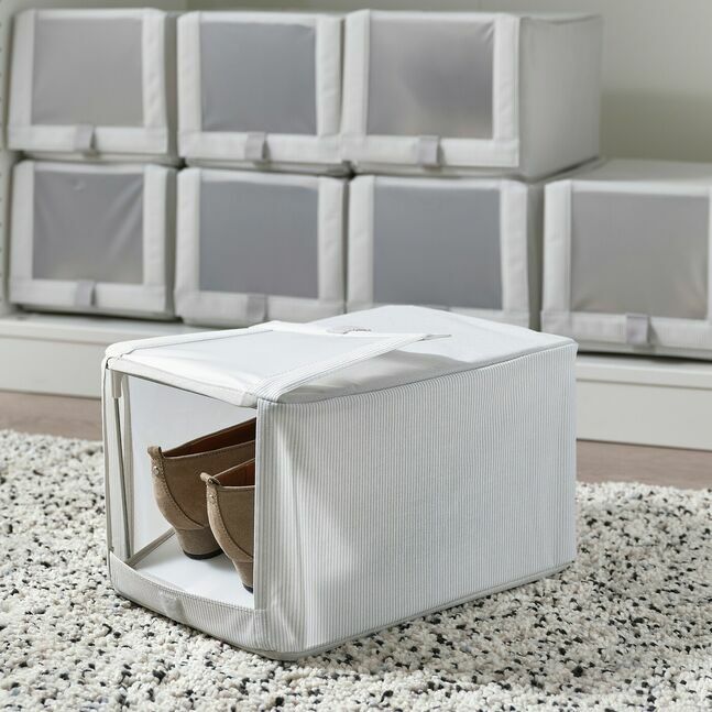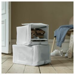 Эта коробка для обуви из мягкой ткани вмещает 2 пары обуви и имеет практичную перегородку, которая позволяет хранить их отдельно друг от друга. А если вам нужно место для большего количества обуви, вы можете аккуратно сложить несколько коробок друг на друга.