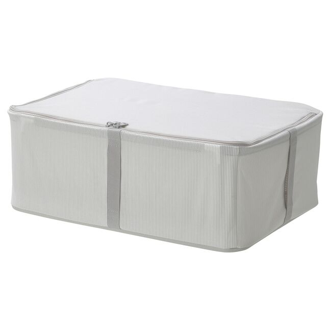 Часть серии HEMMAFIXARE - прочные и штабелируемые коробки с тканевой обивкой разных размеров, которые помогут вам использовать каждый сантиметр пространства в шкафу для организации одежды, обуви и гаджетов.
