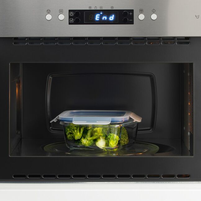 Контейнер для еды изготовлен из безопасного для духовки стекла и может использоваться как посуда для духовки/сервировки.