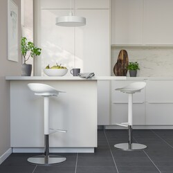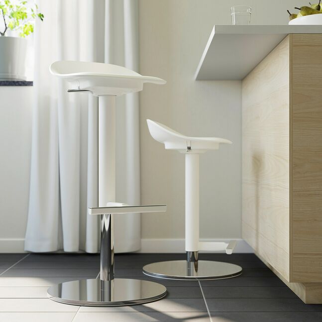 Выберите правильную высоту барного стула, чтобы на нем было удобно сидеть, оставалось достаточно места для ног и он был соразмерен с остальным пространством. Кухонные стойки и столы высотой от пола обычно составляют 87-91 см. Чтобы подобрать идеальный табурет для вашей стойки, обратите внимание на высоту сиденья - 60-66 см. Столешницы или прилавки высотой 101-106 см от пола обычно классифицируются как "барные", и для них требуется высота сиденья 72-76 см.