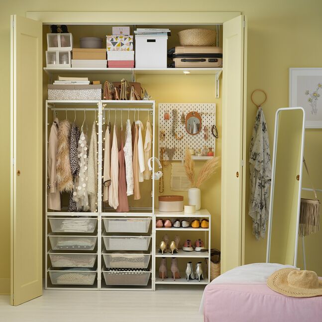 Знаете ли вы, что спрятано в ваших шкафах? Вероятно, одежда, спортивный инвентарь, обувь, зонтики и прочее, чему там не место. Но в каждом шкафу есть и ценное пространство. Система хранения JONAXEL позволяет использовать его с умом - от забытых углов до пустоты под потолком.