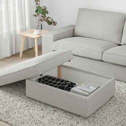 Ножной стул KIVIK - это нечто большее, чем кажется на первый взгляд. Отдохните, положив на него уставшие ноги, или воспользуйтесь скрытым пространством для хранения вещей - все под рукой, но не на виду.