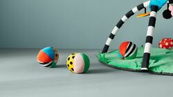Игрушки, адаптированные для маленького ребенка, могут способствовать этим важным впечатлениям, стимулирующим развитие мозга. Но что же на самом деле делает ту или иную игрушку привлекательной для ребенка? "Часто это что-то, что выделяется в окружающей обстановке и привлекает к себе внимание", - говорит Кристер. "Может быть, черные точки на желтом жирафе или звук погремушки". Дизайнер Малин Уннборн, разработавшая коллекцию игрушек KLAPPA, стремилась найти те специфические детали, которые могли бы вызвать любопытство и привести к игре. "Например, для книжки с картинками и мяча я использовала контрастные цвета и ткани с разной структурой: глянцевые и матовые, мягкие и шершавые". На одеяле, игровом коврике и детском тренажере Малин сделала акульи плавники, уши и другие детали, которые торчат как раз настолько, чтобы маленькие и любопытные пальчики могли их ущипнуть.