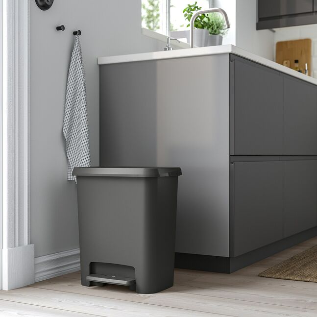 Педальный контейнер KNÖCKLA также выпускается в более крупном размере без контейнеров - идеальный вариант для тех, кому нужен более вместительный контейнер для мусора или для сортировки крупногабаритных отходов, таких как бумажные коробки и бутылки.