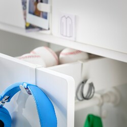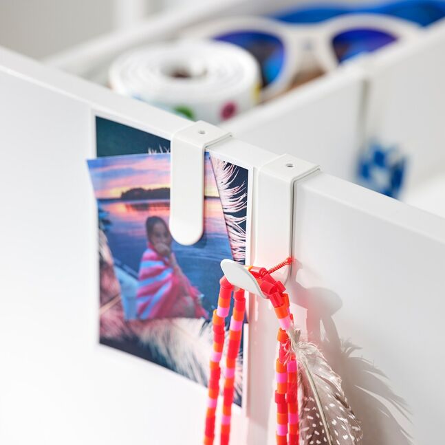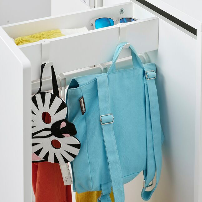Задумывались ли вы о том, как выглядит школьный коридор? В них часто полно крючков, и это не случайно. Вешалки сложны в обращении для детей разных возрастов, а достать одежду из аккуратной стопки сложенных вещей в шкафу может быть почти невозможно (и так же сложно положить обратно). Крючки HJÄLPA и LÄTTHET из нашего ассортимента подходят к SMÅSTAD и дополнены двумя новыми моделями умных крючков. Один крепится на перекладине для одежды, а другой фиксируется над дверью или ящиком, так что его задняя часть может служить зажимом для последнего рисунка или фотографии.