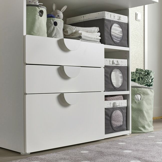 Каждая вещь на своем месте. Декоративные и практичные коробки облегчают организацию и поиск всех мелочей в детской комнате.