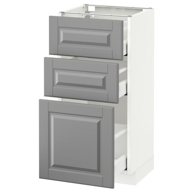 Кухонная система METOD дает вам безграничные возможности для создания кухни вашей мечты. В сочетании с фасадами BODBYN мягкого серого цвета со скошенными краями вы создадите традиционный образ с теплым и уютным настроением.