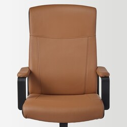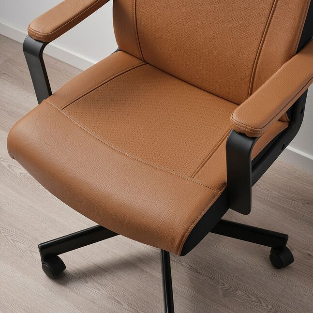 Вращающееся кресло MILLBERGET оснащено механизмом регулировки наклона, который позволяет легко менять положение сидящего. Увеличьте или уменьшите сопротивление кресла, чтобы оно лучше соответствовало вашим движениям и весу - для этого достаточно повернуть ручку под сиденьем.