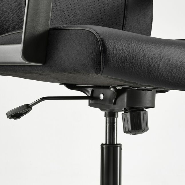 Вращающееся кресло MILLBERGET оснащено механизмом регулировки наклона, который позволяет легко менять положение сидящего. Увеличьте или уменьшите сопротивление кресла, чтобы оно лучше соответствовало вашим движениям и весу - для этого достаточно повернуть ручку под сиденьем.