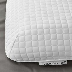 Благодаря уникальной форме эргономичная подушка MJÖLKKLOCKA идеально подходит как для сна на спине, так и на боку, а если вы меняете положение в течение ночи, мягкая пена с эффектом памяти адаптируется.