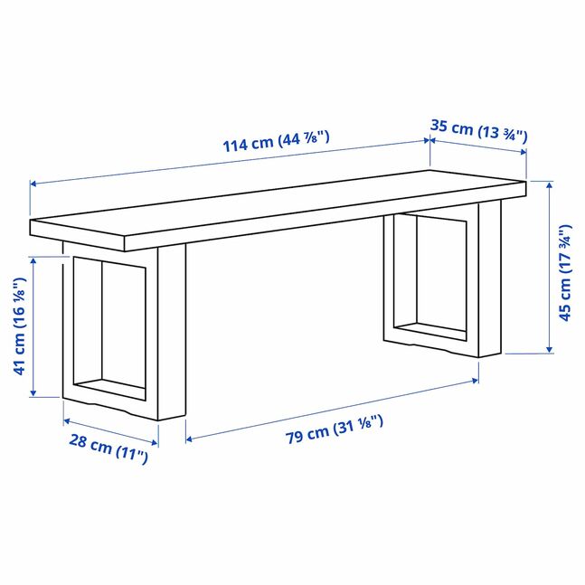 Скамья с верхним слоем из массива дерева, прочного натурального материала, который при необходимости можно шлифовать и обрабатывать.