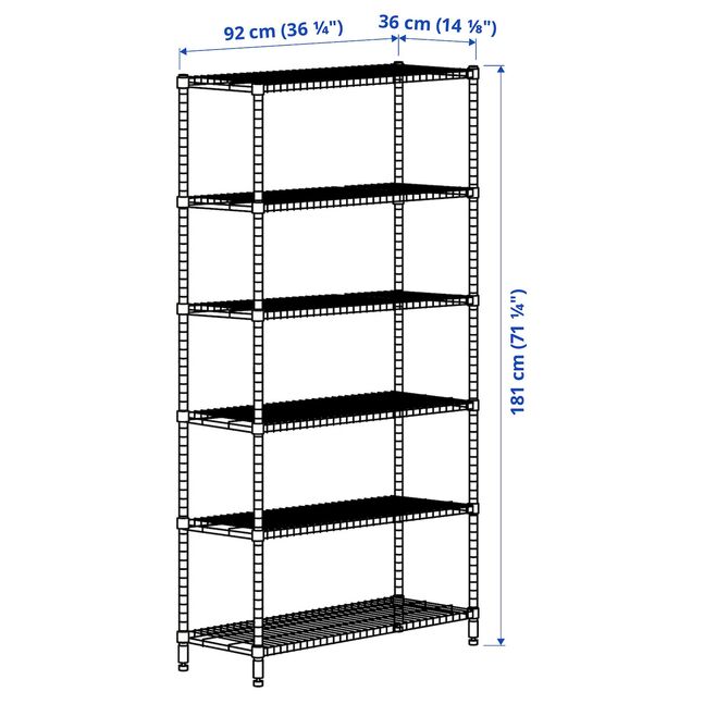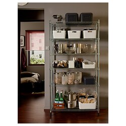 В просторной системе хранения OMAR найдется место и для маленьких, и для больших вещей. Начните с того, что подумайте, что вы хотите хранить. Затем скомбинируйте секции полок, стеллажи и полки для бутылок так, как вам удобнее всего. Вы можете строить вверх и в стороны - без инструментов. Устойчивость обеспечивается соединительными элементами, а полки можно перемещать по своему усмотрению. Для мелких предметов есть практичные корзины с зажимами и крышка, которая делает проволочную полку плоской.