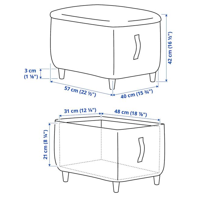 Сядьте поудобнее и отдохните немного. Этот пуфик - идеальное дополнение к креслу OSKARSHAMN. Красивый, стильный и практичный, с местом для хранения под сиденьем.