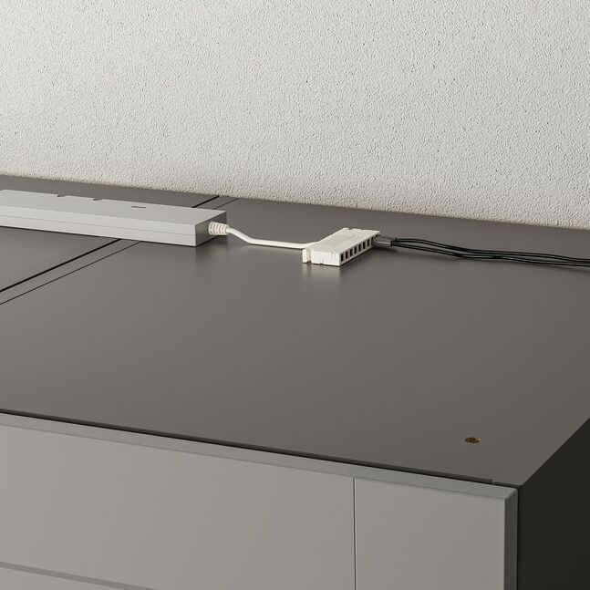 Темно в гардеробе? Эту проблему легко решить с помощью современной светодиодной ленты со встроенным датчиком, разработанной специально для шкафов PAX.