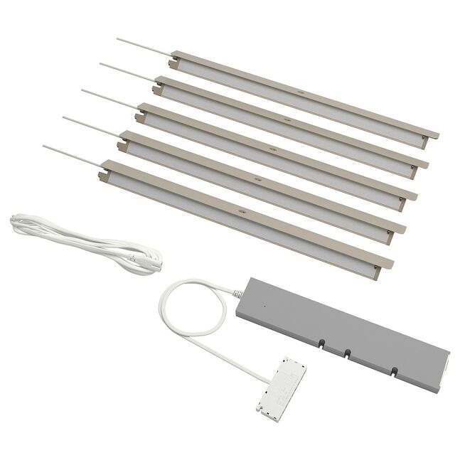 В комплект входят 3 различные фурнитуры - для установки светильника под полкой, под верхней панелью или в шкафах с раздвижными дверцами.