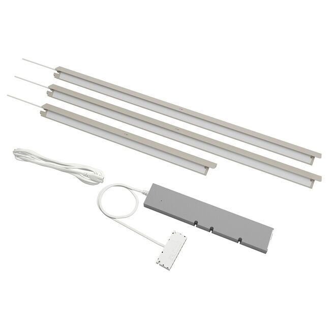 В комплект входят 3 различные фурнитуры - для установки светильника под полкой, под верхней панелью или в шкафах с раздвижными дверцами.