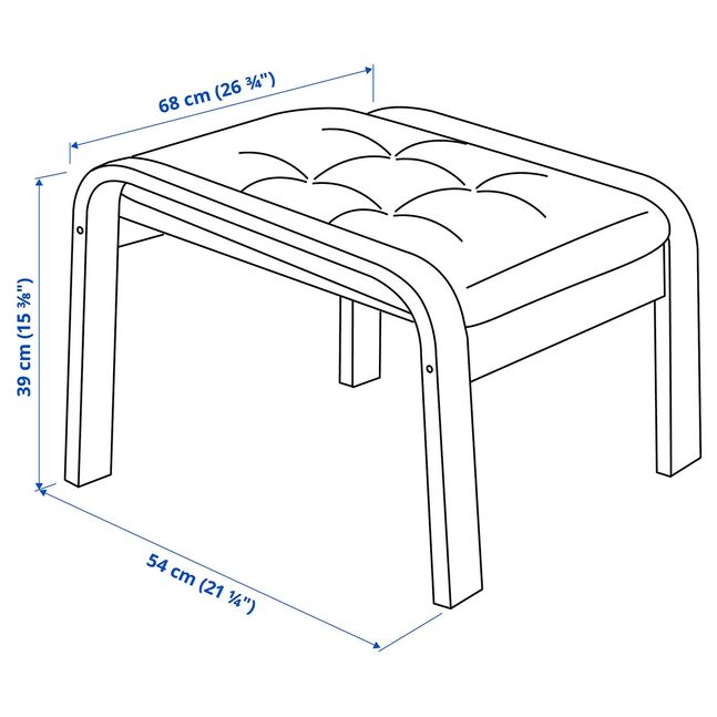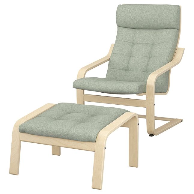 Кресло POÄNG имеет стильные изогнутые линии из гнутого дерева, обеспечивая приятную поддержку для шеи и удобную упругость. Пуфик - идеальный компаньон, на который приятно положить ноги. Хотите попробовать их тоже?