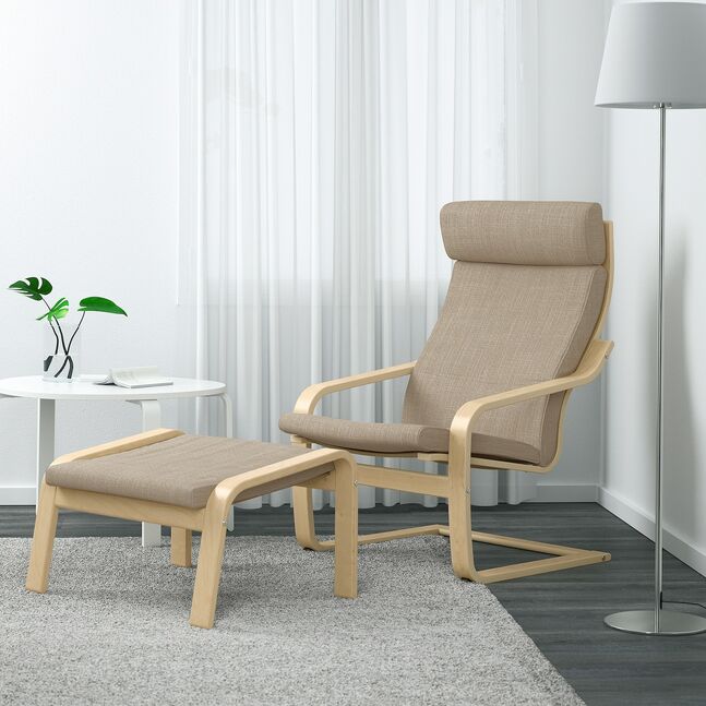 Чтобы расположиться еще более комфортно и расслабленно, вы можете использовать кресло вместе с пуфиком POÄNG.