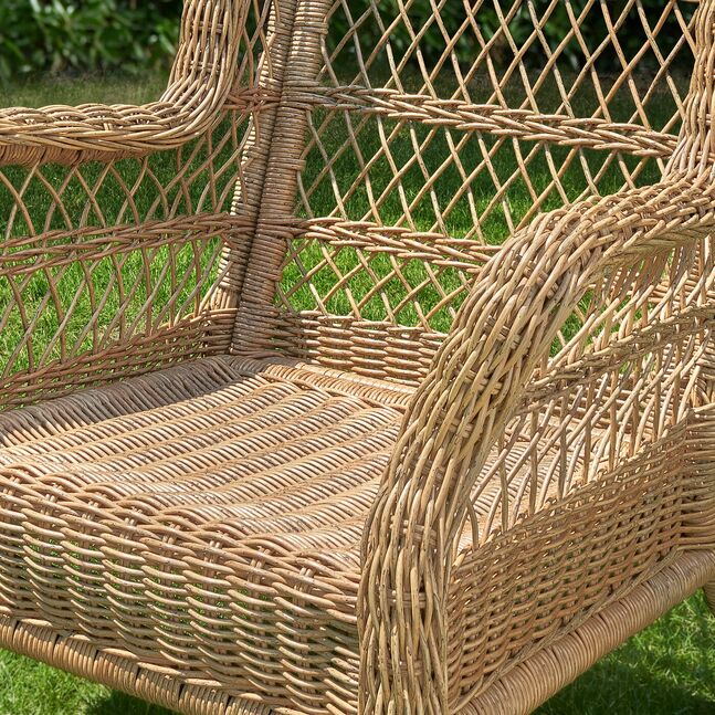 Если вам нужно уделить время себе, это кресло-крыло из пластикового ротанга, не требующего ухода, станет идеальным местом отдыха на свежем воздухе. Высокая спинка обнимает вас и обеспечивает комфортную поддержку всего тела.