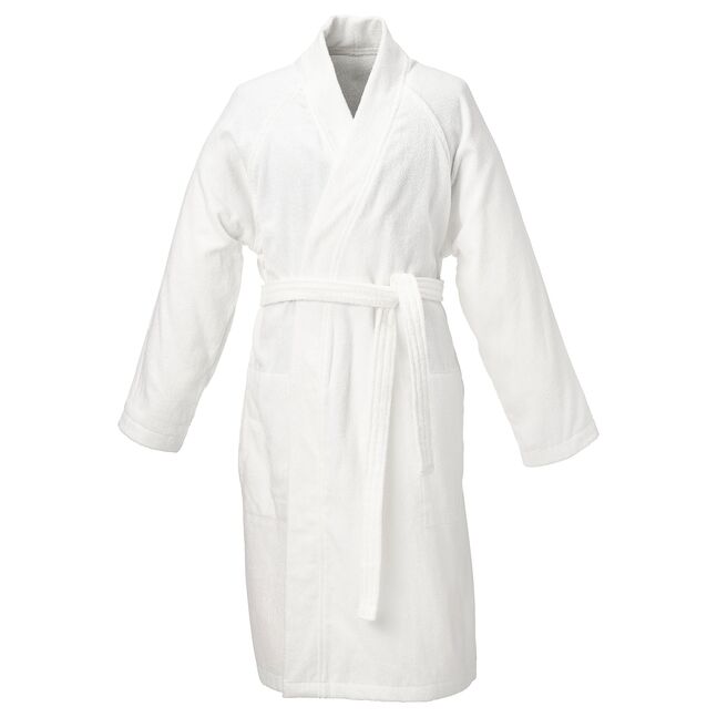 Удобный фасон для долгих, ленивых утренних посиделок дома - мягкая махра с обеих сторон, регулируемые петли для ремня, практичные боковые карманы и рукава, в которых легко двигаться.