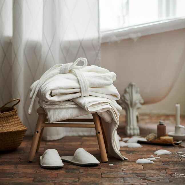 Внутри вы получаете такой же мягкий махровый хлопок, как и снаружи, поэтому после ванны или душа вы можете укутаться в согревающий комфорт - и при этом хорошо выглядеть.