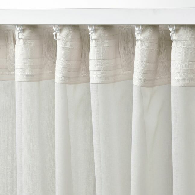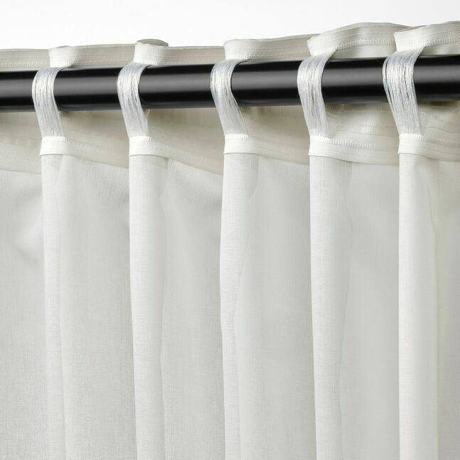 Штора ROSENROBINIA снежно-белого цвета пропускает свет и изящно ниспадает. Лента для крепления позволяет изменить способ подвешивания шторы. Прекрасно сочетается с занавеской-блокиратором, что позволяет варьировать освещение.