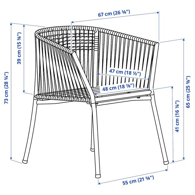 Чистка: Протирайте мягким мыльным раствором. Мы не рекомендуем чистить веревочную или металлическую мебель сильными чистящими средствами или абразивными материалами, так как это может обесцветить или повредить поверхность.