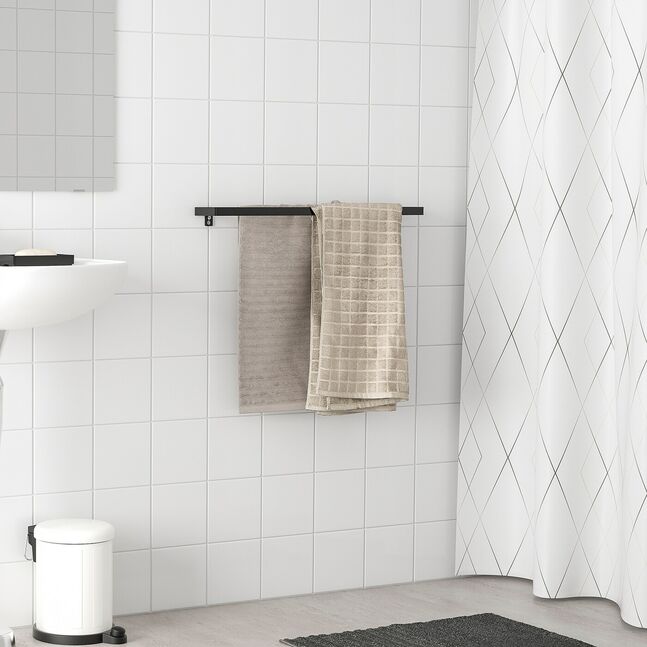 Чистый дизайн с дерзким выражением в черном цвете. Серия SKOGSVIKEN предлагает умные способы организовать пространство и привнести в ванную комнату немного стиля.