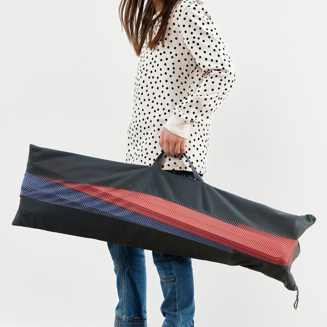 Все детали лежат в сумке с сетчатым отверстием, поэтому полосу препятствий легко перемещать, складывать после игры и хранить до следующего раза.