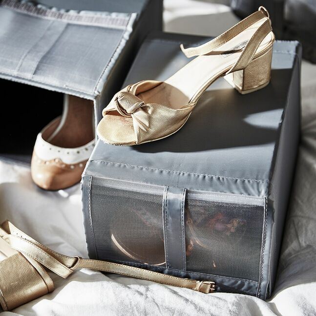 Сетка позволяет воздуху циркулировать вокруг обуви и позволяет легко увидеть, какая пара у вас внутри. Используйте с другими продуктами SKUBB для полного контроля над вашим гардеробом.
