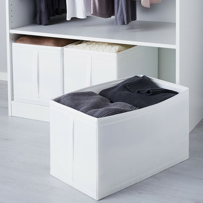 В одной коробке хранятся носки, в другой - тренировочные принадлежности или сложенные свитера. Эти коробки помогут разделить хранение и эффективно использовать пространство. Используйте их вместе с другими изделиями SKUBB, чтобы полностью контролировать свой гардероб.