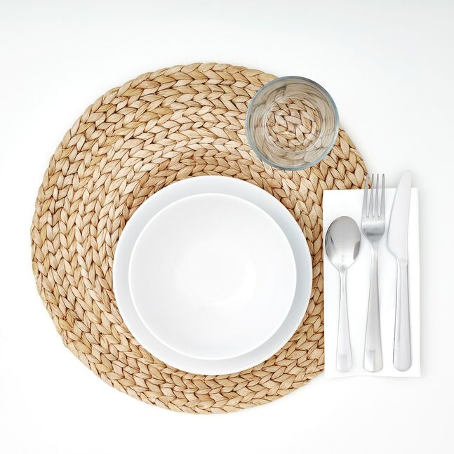 Плацкартный коврик SOARÉ соткан из водного гиацинта, который растет в реке Меконг, Вьетнам. Его сбор, сушка и плетение позволяют освободить водные пути, сохранить традиции и заработать деньги, которые ткачи могут потратить на образование.