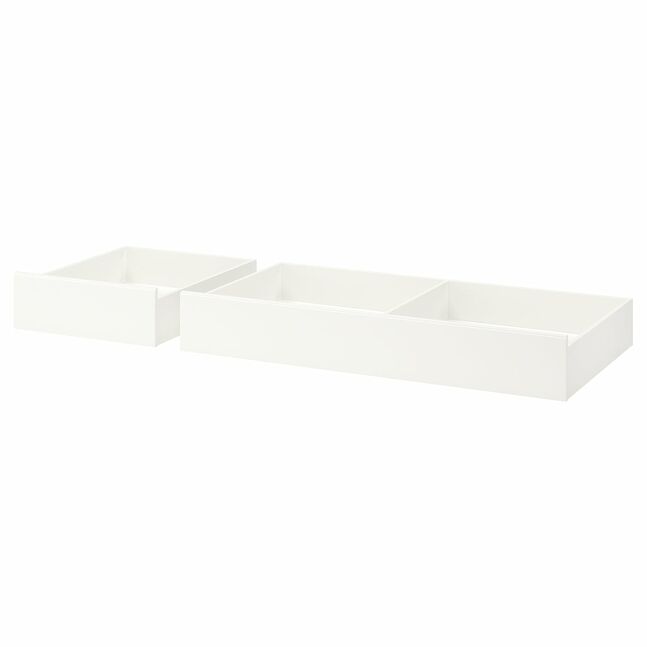Ящики для хранения SONGESAND идеально сочетаются с каркасом кровати SONGESAND. Они аккуратно вписываются в пространство под кроватью и располагаются вровень с боковинами.