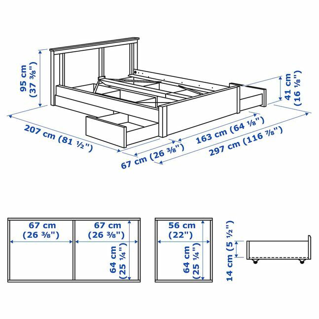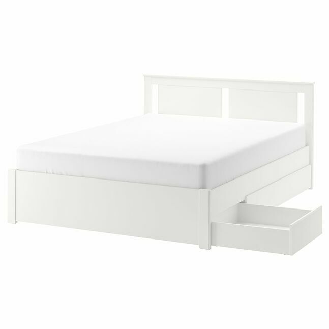 Ящики для хранения SONGESAND идеально сочетаются с каркасом кровати SONGESAND. Они аккуратно вписываются в пространство под кроватью и располагаются вровень с боковинами.