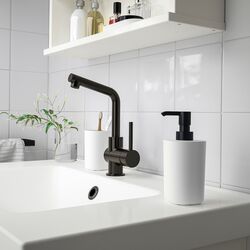 Вы получаете все необходимые функции для умывальника: держатель для зубных щеток, дозатор для мыла и поддон.