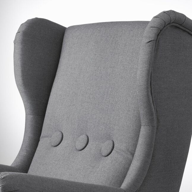 Выбор пал на крылатое кресло STRANDMON. "Оно вне времени, уютное и обладает захватывающим дизайном, как будто сидишь в защитных объятиях", - объясняет Николя Кортолецци, который входил в команду разработчиков. Но дело не только в уменьшении размеров. "У детей не такие пропорции, как у взрослых, и они не сидят так, как мы. Они двигаются и любят поднять ноги, поэтому мы сделали фиксированное сиденье, а не свободную подушку". Команда работала над устойчивостью кресла, чтобы сделать его безопасным. Среди прочего, ножки были расположены по-другому, чтобы центр тяжести был адаптирован к тому, как дети используют кресла. Что касается ткани ─ мы знаем, какая прочность требуется, когда кресло иногда используется как необитаемый остров или самая высокая гора в мире.