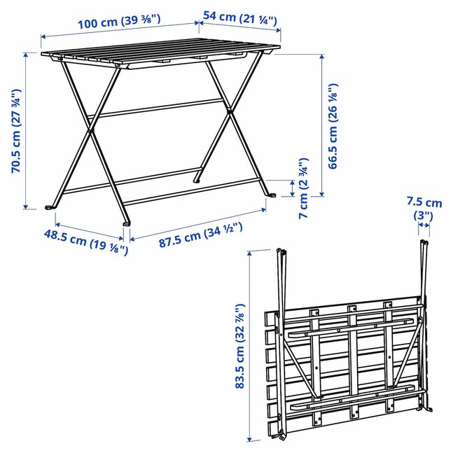 Стол занимает мало места при хранении, так как складывается в плоскую форму.