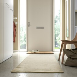 Ковры TIDTABELL с нежным меланжевым эффектом добавят тепла в ваше пространство и комфорта под ногами. Плоское плетение из прочной и устойчивой к пятнам шерсти позволяет легко разместить их в вашем доме, а также выбрать из нескольких цветов и размеров.