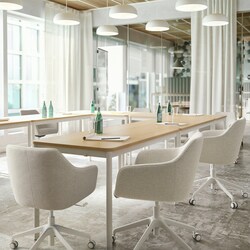 Вращающееся кресло с мягкими формами и приятной набивкой. Обивка из прочной ткани, которая хорошо сочетается с любым типом помещений, и колесики, которые позволяют легко перемещать его.Сиденье состоит...