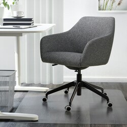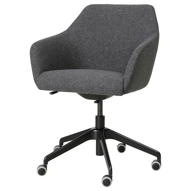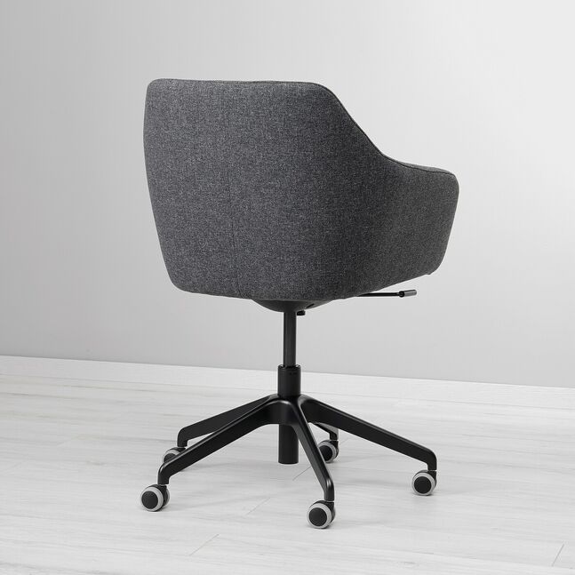 Вращающееся кресло с мягкими формами и приятной набивкой. Обивка из прочной ткани, которая хорошо сочетается с любым типом помещений, и колесики, которые позволяют легко перемещать его.