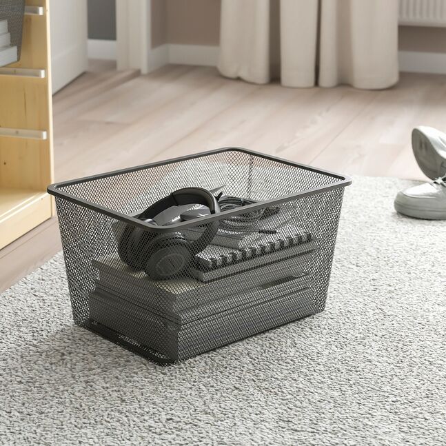 Этот классный и вместительный сетчатый ящик для хранения идеально подходит к рамам TROFAST, его легко доставать, переносить и снова укладывать.
